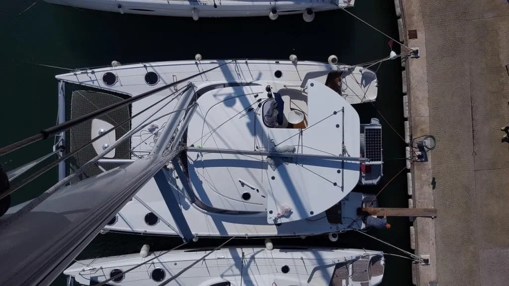 We started our adventure departing from Mahón, sailing towards the south of the island. Thanks to the reduced draft, we were able to anchor close to shore in many coves. A very well maintained catamaran.